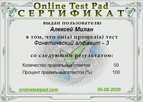 Первые два теста не выдают сертификаты. Результаты по времени, каюсь, не зафиксировал. Однако отмечу, что во всех случаях мне удалось набрать 50 из 50 правильных ответов. Затраченное время во всех случаях - менее 5 минут.